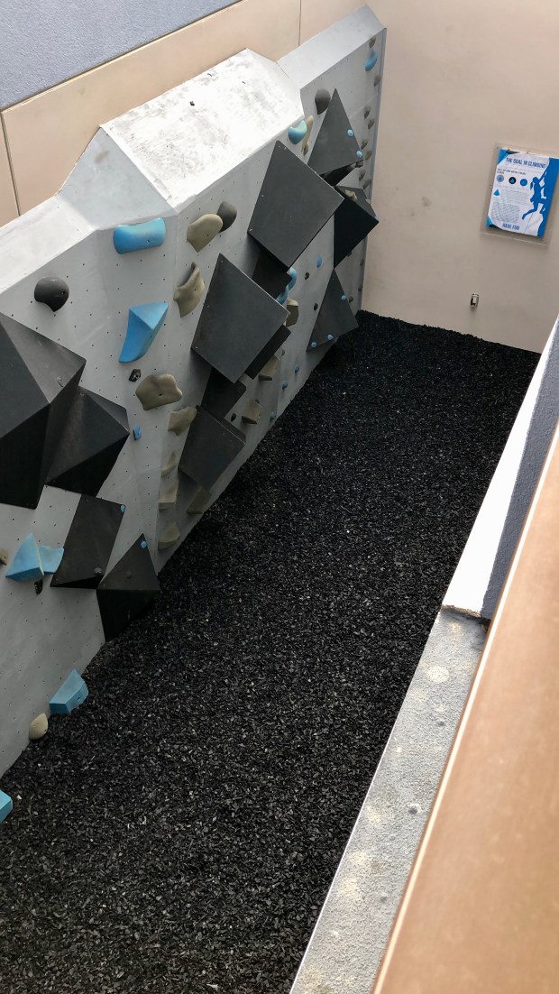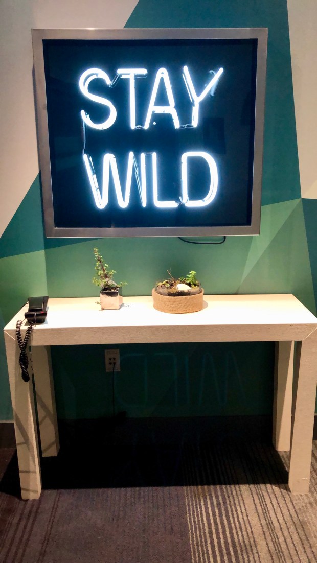After checking in, I went to check out my room, because I know that Kimpton knows how to decorate a guest room. And I was not disappointed! It’s like they were inside my head with all my favorite colors and textures, and the shower of my dreams. And right outside my room, my balcony overlooked the indoor rock climbing gym! (You done real good here, Kimpton.)