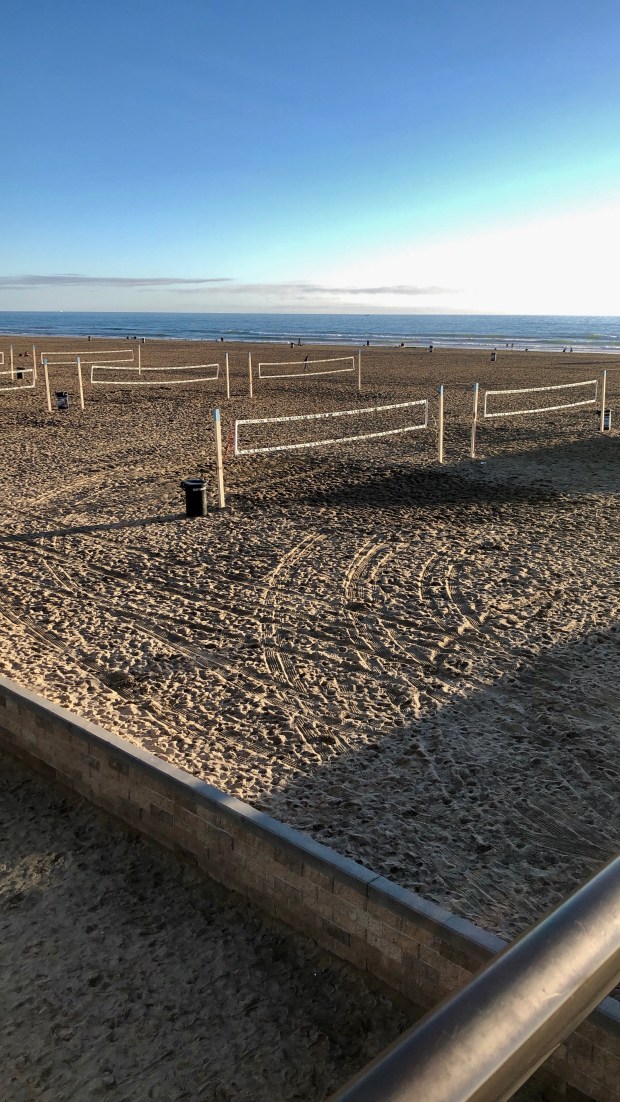 We decided that our last day called for lunch by the ocean, so we walked over to Sandy’s Beach Shack, which is right below the Huntington Beach Pier and has a perfect view of the water and the sand volleyball players. I don’t eat a lot of meat these days, but when you can actually see the water from your dining table, Mahi Mahi Tacos it is. And oh so glad I did…