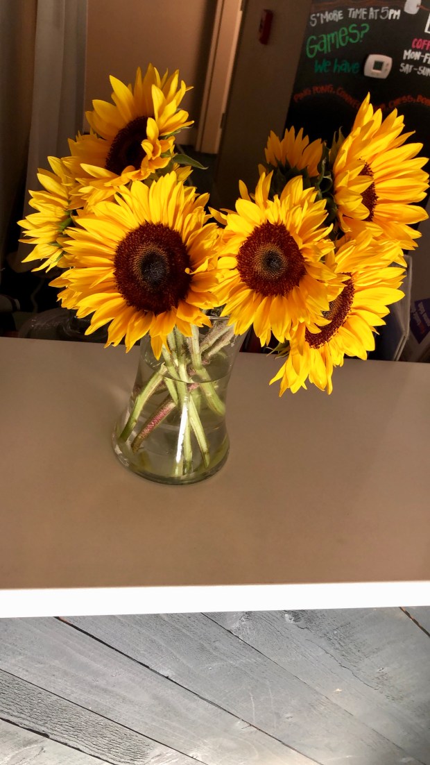 As soon as I walked in, I was reminded why I love Kimpton properties. They have such attention to every last detail and ensure that every touch is positive and lasting. Check out this lobby and the gorgeous sunflowers (my absolute fave!) that greeted me at check in! They even have a special check in experience for their puppy guests! (Don’t tell Roxy!)