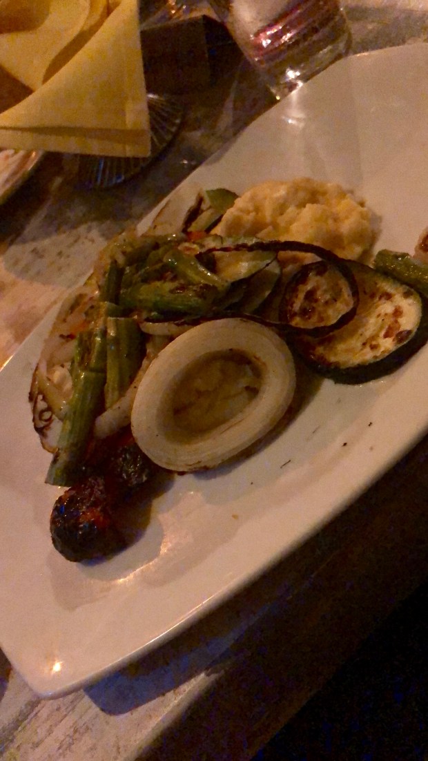 Dinner was exceptional! We each got entrees, but we also ordered a large selection of their side dishes to share. I decided on the Grilled Vegetables on Polenta as my entree, but I sampled the Risotto, the Grilled Asparagus, the Margherita Flatbread, the Lobster Mac & Cheese, and of course, the Brussels.