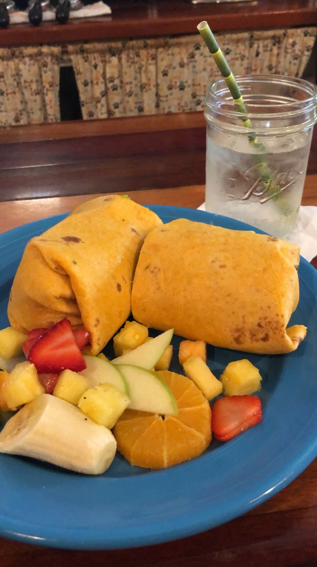 We were both craving something light for lunch, and we found Lost Dog around the corner from Rita’s.  Their brunch menu was just what we had in mind, and the dog décor throughout made it just our type of place!  I got this super fresh veggie wrap and fruit, and it was the fuel I needed to keep going with our day.