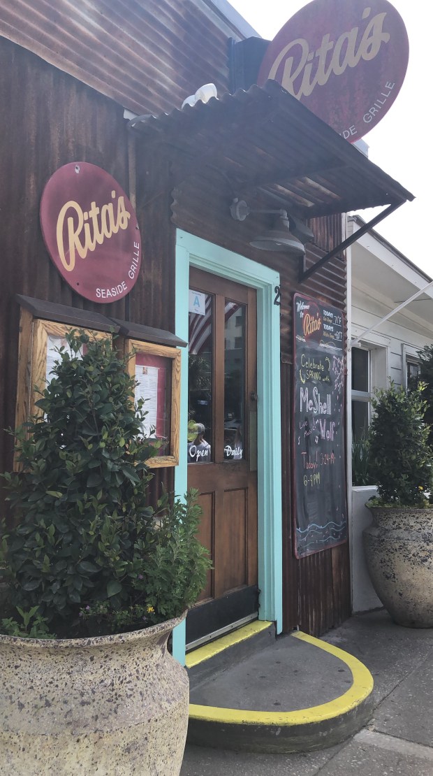 After leaving the beach, we walked around for a bit before stopping in at Rita’s for a drink and a snack.  Another round of chips and salsa, a beer for him, and a super tasty Strawberry Basil Mimosa for me!