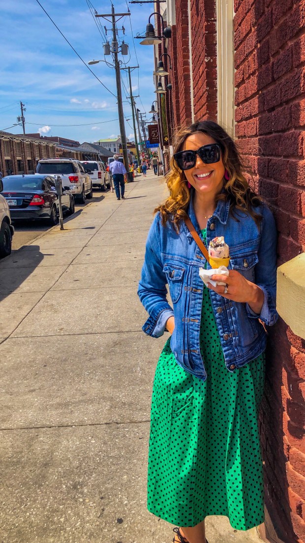 After lunch, we walked down the street to Savannah’s, which was the candy store on my list.  It is an old-timey candy store with an ice cream counter.  I was deep into my no candy Lent, so I didn’t partake in any sampling.  But I did get a bag of gummies and an ice cream cone to go.