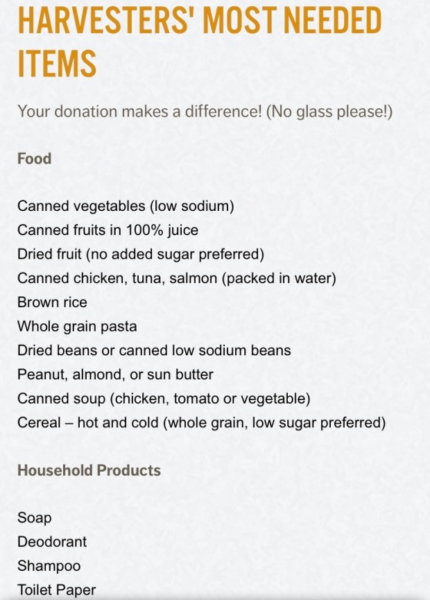 With my travel schedule, I knew that I couldn’t commit to a regular volunteer effort. And I can’t necessarily afford to give my money on an ongoing basis. But this city makes it so easy to donate goods to our local food banks! So after that initial bag of donated items, I came up with a plan to give on an ongoing basis. Each week, when I get my groceries, I will be adding three donation items to my cart and dropping them in the Harvesters barrel at Price Chopper. The average can of vegetables is less than 50 cents, and the donation barrel is at the front of the store. Couldn’t be easier.