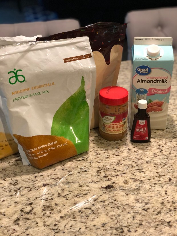 - 2 scoops protein powder (I used chocolate Arbonne.)