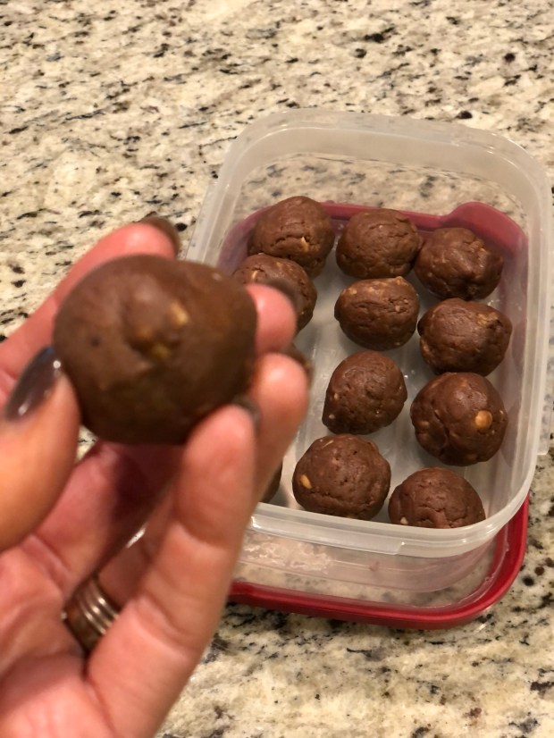 • Roll into balls and place in refrigerator for 1 hour before eating.