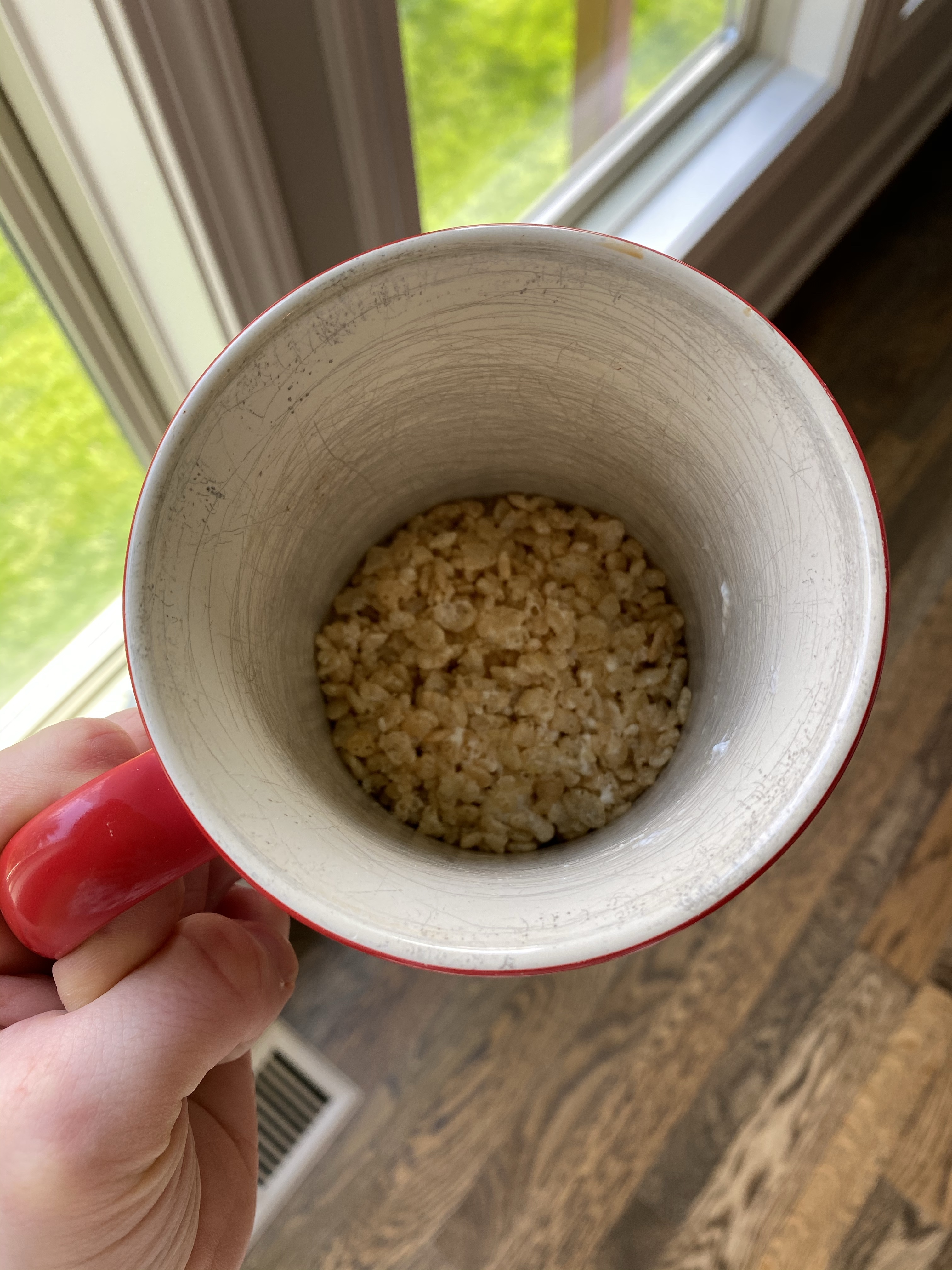 1/2 cup Rice Krispies (You can also use Fruity Pebbles, Trix, Chex, whatever cereal you want!)