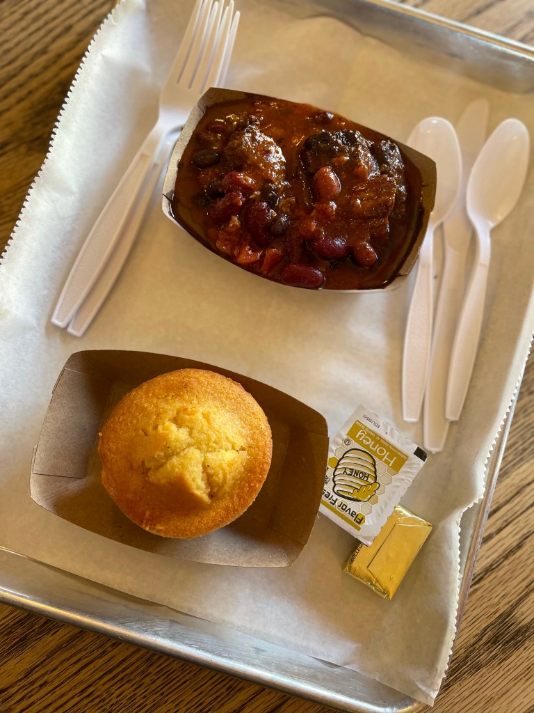 What to get: Burnt End Chili and Honey Cornbread Muffin