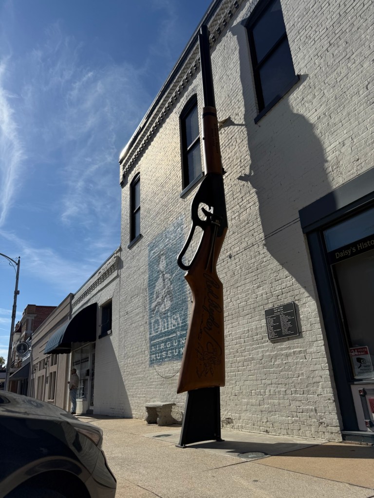 From Siloam Springs, we took the short drive to Rogers, Arkansas. We started our visit at the iconic Onyx Coffee Labs, who is headquartered in Downtown Rogers. The coffee shop was absolutely stunning, our coffees (and hot chocolate for the mini) were delicious, and we even got to watch the roasting process. We took our coffees to go so that we could explore more of Downtown Rogers. There were so many adorable shops, boutiques, bakeries, and cafes. We could have spent the entire day exploring everything! While downtown, we ducked into the Daisy Airgun Museum, home of the world’s largest BB gun, and other fun treasures. This was such a fun find, and we all loved the quick tour. After the museum, we stumbled upon a really great park at the edge of downtown, so we spent some time running, playing, and climbing. Somehow, we decided we were still up for one more adventure in Rogers, so we made the quick drive over to K1 Speed Go Karts. My husband and son both love Go Karts, so this was right up their alley. (And I’m a good sport, so I suited up too.). This wound up being one of our favorite parts of the trip, because the place was really fun, and the staff is great with all ages and experience levels.