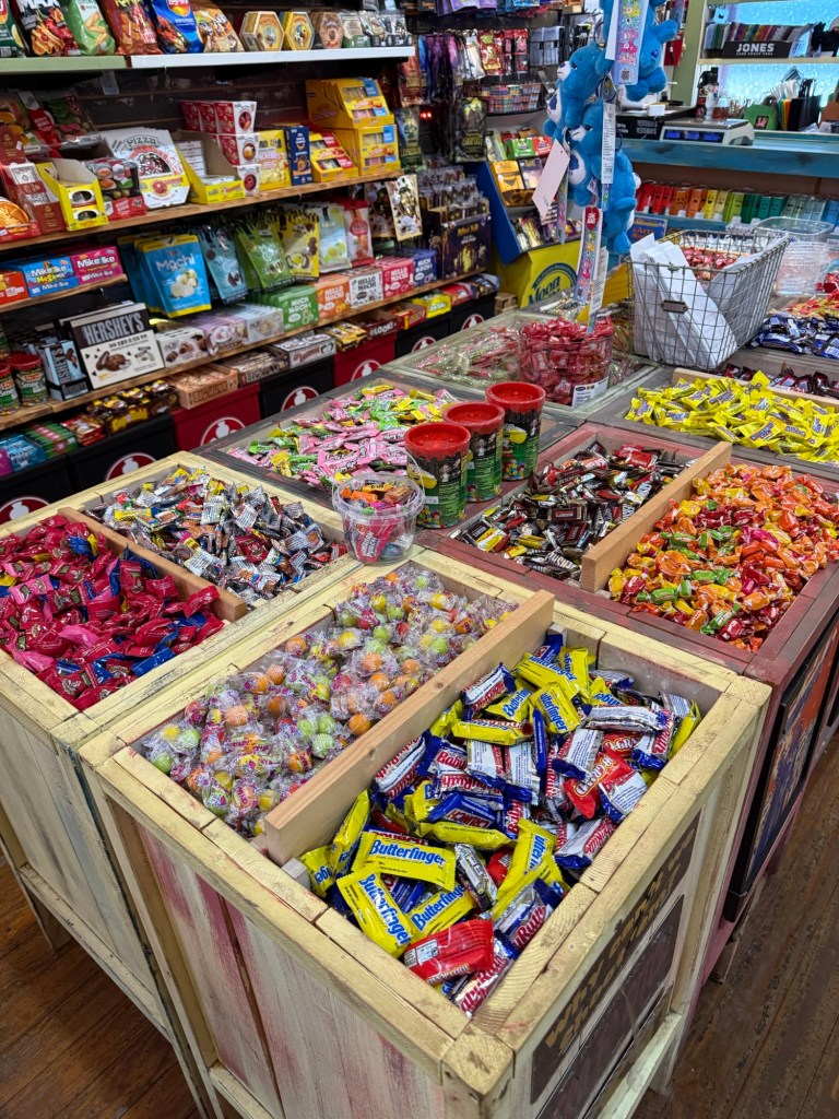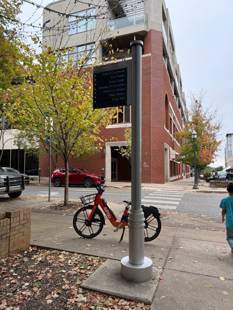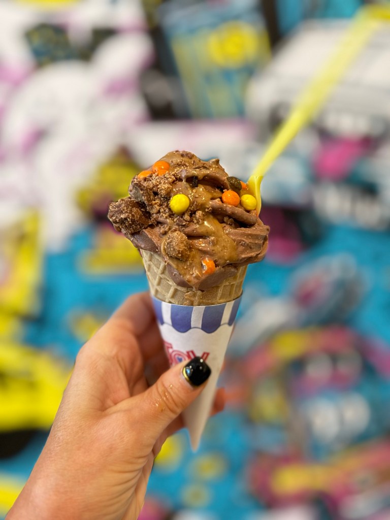 After parking our karts, we made the drive to Bentonville, Arkansas for our last stop of the day. When we got to Bentonville, it was early afternoon, and we drove straight to Crystal Bridges Museum of American Art to explore. This museum is world famous, and for good reason. It is such a gorgeous space, both inside and out, and their collection is an eclectic curation that any art lover will enjoy. While at the museum, we grabbed a snack and drink from their onsite restaurant, which is such a great option. You could truly spend an entire day at this museum! After a couple of hours at the museum, we were ready to check into our hotel and rest up before dinner. There are so many great hotel options in Bentonville, but we were thrilled to be staying at 21C Bentonville. There are a handful of 21C properties in the country, all known for their fun and funky interiors and art collections, their exceptional customer experience, and those big ol penguins. (Pro Tip: Ask the front desk to surprise your kiddos with a penguin, and you won’t be disappointed. You may find it outside your room, in your hallway, or even in your bed!). After a quick check in and refresh, we walked over to the downtown square for dinner at Bar Cleeta. Not only was this our favorite meal of our entire trip, it was actually my favorite thing we did the entire weekend. The menu is full of small plates, meant to be shared. We were pretty hungry, so we had quite the spread to share, which was so fun. The entire restaurant team was welcoming and helpful and gave the best recommendations. And they even made our son his own little mocktail, which made him feel so special. After dinner, we walked around downtown, popping into the shops and boutiques. We stumbled on an ice cream shop and decided we needed one more treat before calling it a night.