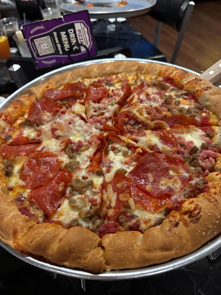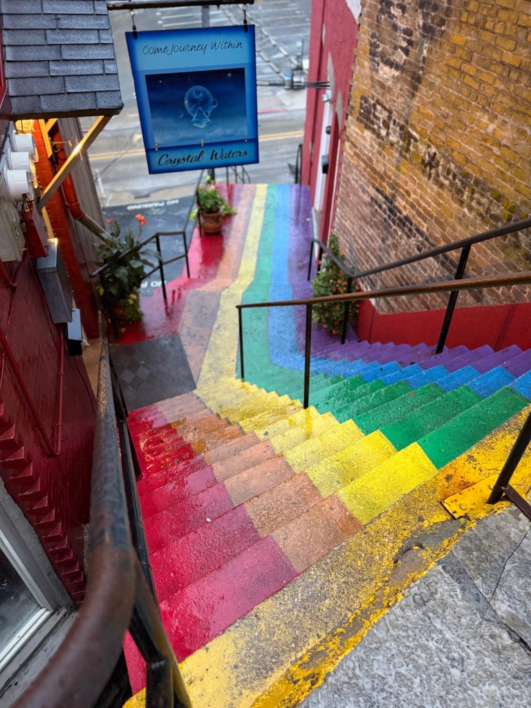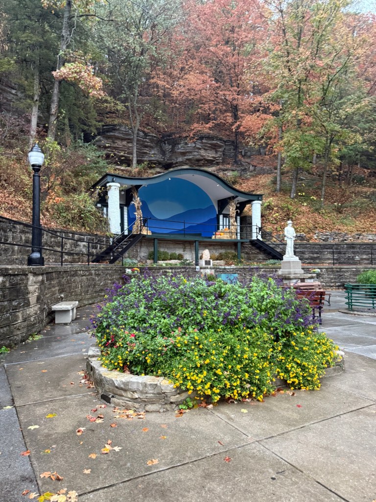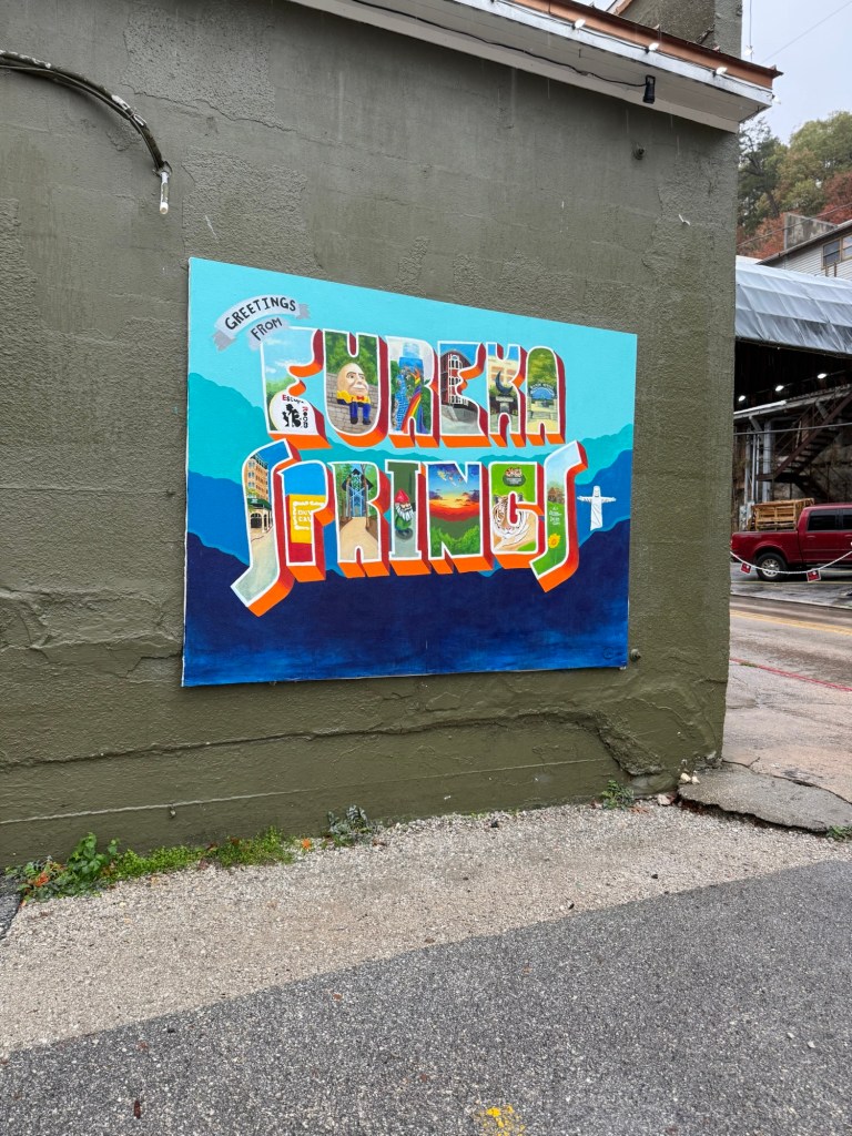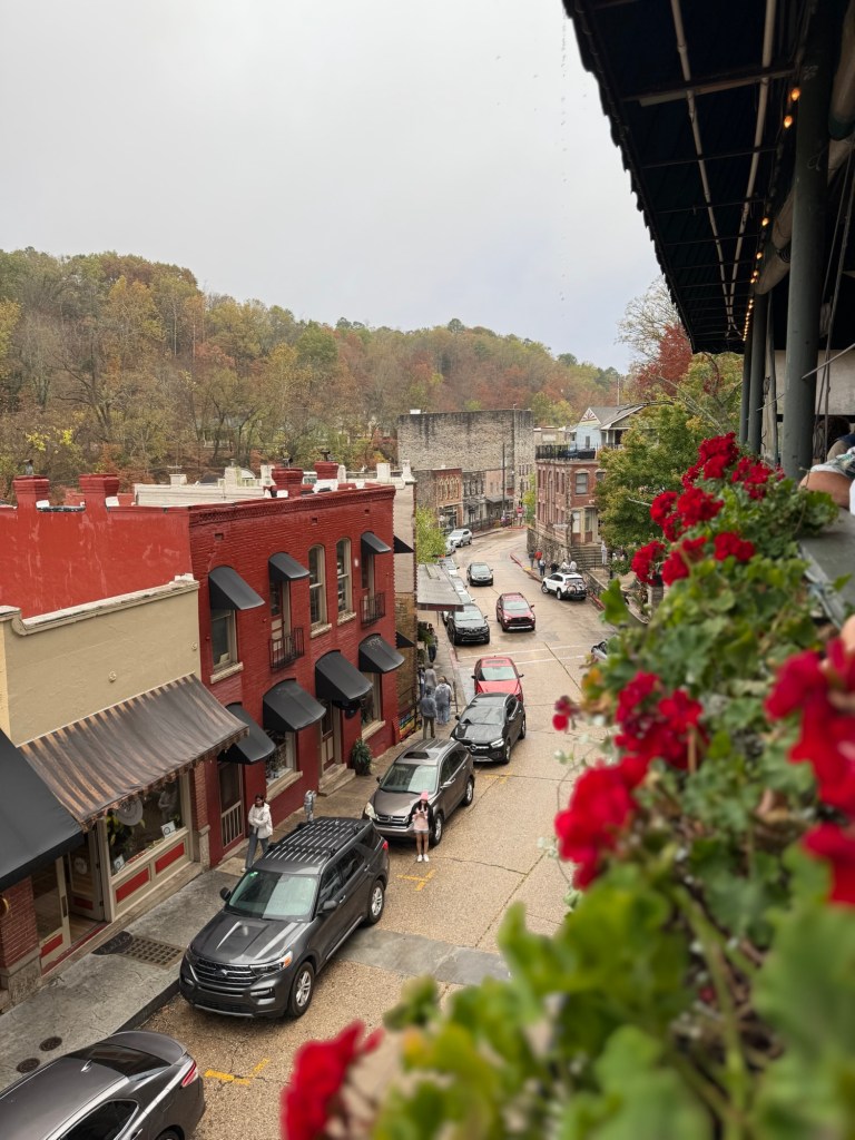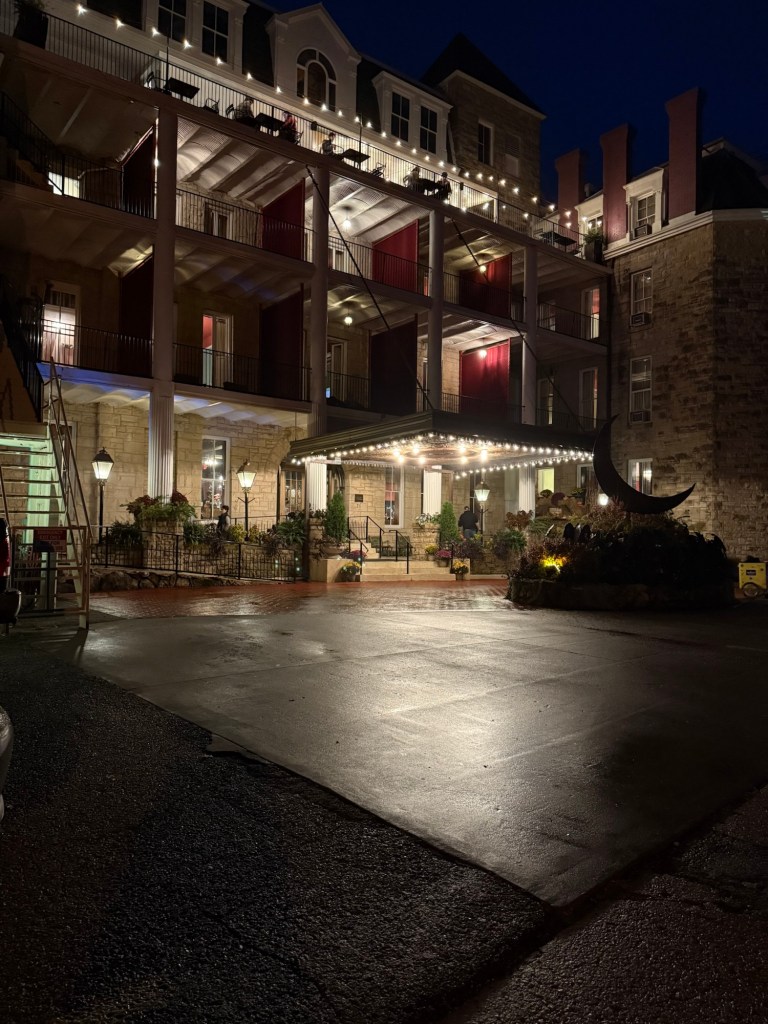 With full bellies and full hearts, we made the beautiful drive to Eureka Springs, Arkansas. Eureka Springs is full of culture and history, and you can feel it as soon as you pull into their downtown. Hilly, windy roads lined with shops, restaurants, art galleries, and maybe a tarot reader or two. Our first stop was to check into our hotel, Basin Park Hotel, a very well-known historic downtown hotel. It still has all of its original charm, with a few upgrades for modern convenience. After dropping our bags, we went up to their rooftop restaurant for a snack and a drink. From the rooftop terrace, you can see the entire street, and it was such a beautiful view! It was only a quick stop at the rooftop, because our next adventure was taking our hotel’s shuttle over to the Crescent Hotel for a ghost tour. Eureka Springs is known for its history and its connection to ghosts, and the Cresent Hotel is known for ghost sitings and is full of stories. The hotel offers a few different tours, but we took the kid-friendly tour, which was perfect. It wasn’t scary, it was the right amount of a history lesson, and it was a lot of fun. After our tour, we went upstairs to SkyBar Pizza. There was quite a bit of a wait, so we put our name on the list and went to explore the hotel a bit more. They have a really fun area in the back with yard games, a food truck, a bar, and live music, so we spent some time out there while we waited for our table. The pizza was worth the wait, and we shuttled back to our hotel after we finished.