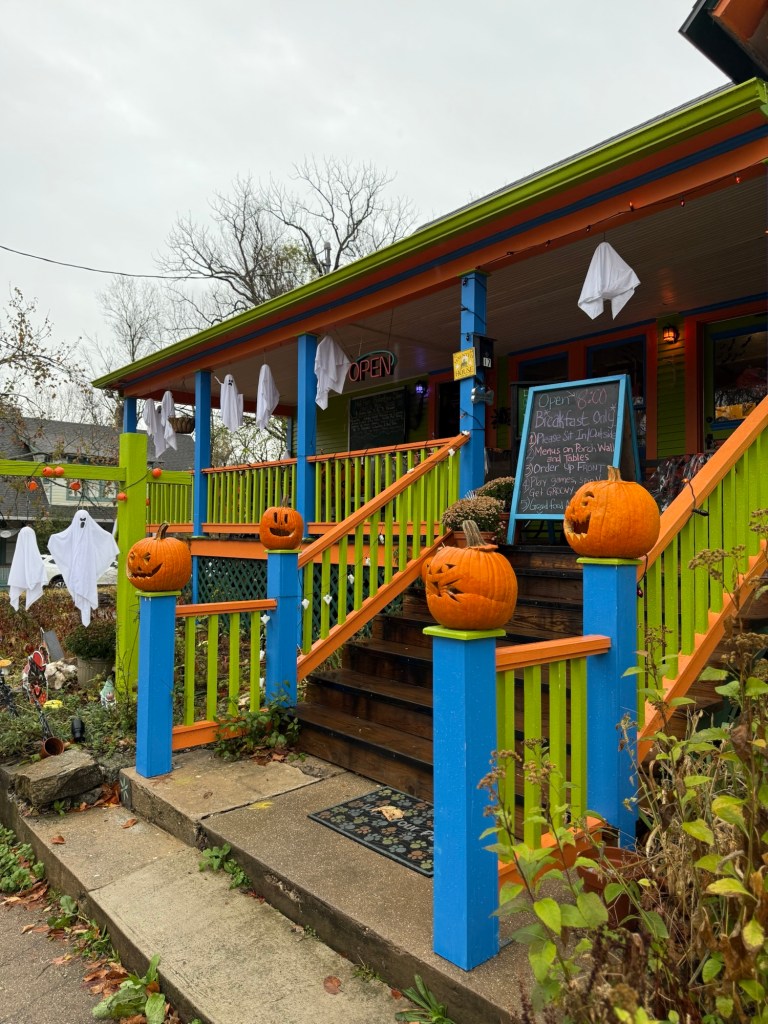 We got up early on Saturday morning to get a head start on our next trip. After a quick stop at Airship Coffee before leaving Bentonville, we made the quick drive to Springdale, Arkansas. Our first stop was Susan’s for breakfast. This place was popular! And for good reason, because the food was great, and the restaurant staff was so fun. The Springdale Dia de Los Muertos Festival was happening in their downtown, so we drove over to check it out. There were so many vendors, food trucks, and activities, and we loved walking through and taking in the culture and significance of the event. While downtown, we stopped in several shops and boutiques and met lots of very friendly locals.
