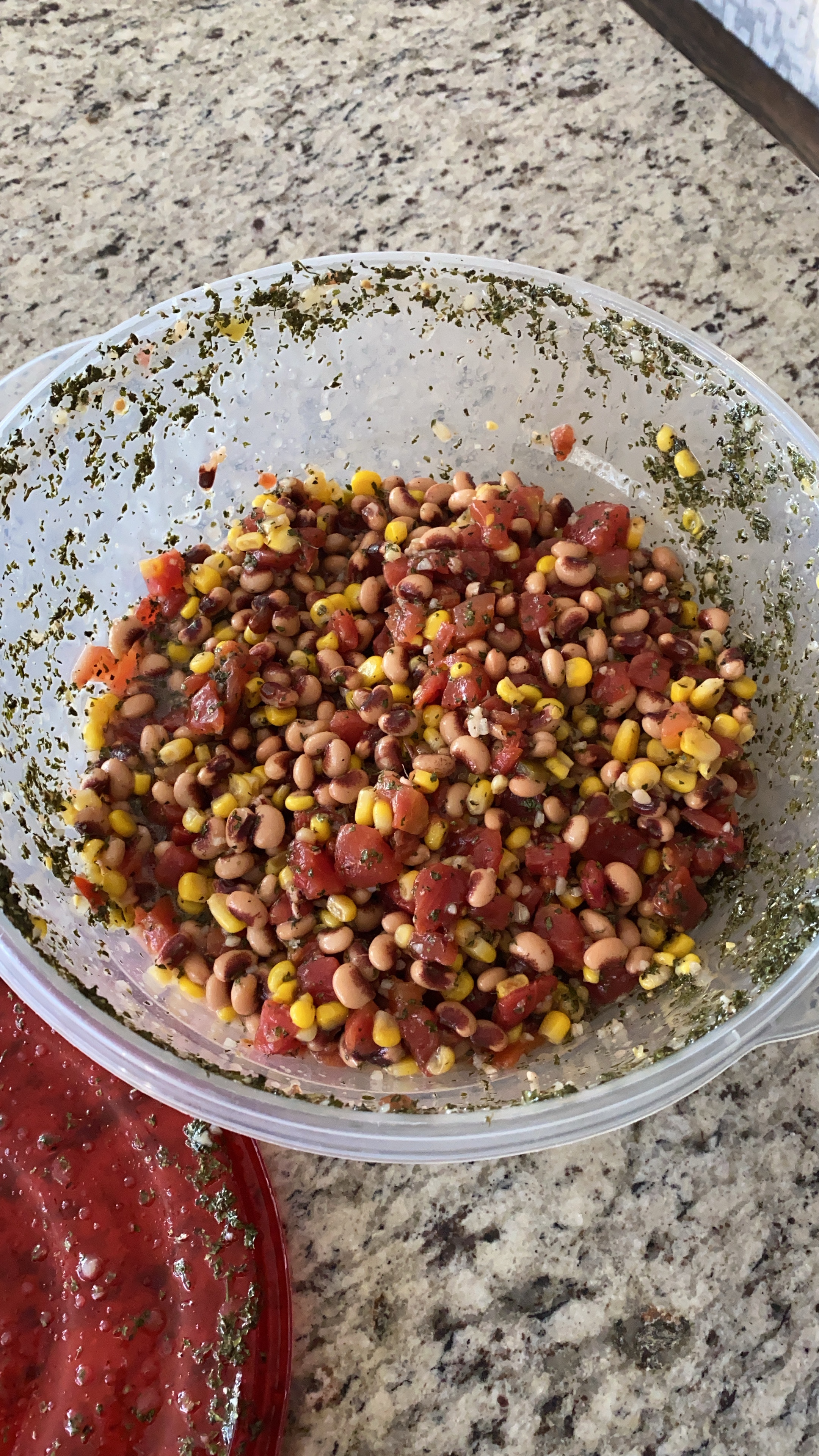 Growing up in my house, lucky black-eyed peas on New Year’s Day were a mandatory practice. There was no way my mom was letting you go to bed that night without at least one bite. And even as an adult, I got a phone call (and later text) to confirm that I had my beans. Here’s the thing—I hate black eyed peas. When I was little, I would literally gag when made to take my bite. (Maybe a little dramatic, but not my favorite nonetheless.) So when I was at a cookout one time and I was going full savage on a dip only to realize that it contained black-eyed peas, I was shocked. I immediately asked for that recipe, and I’ve made my own variation every New Year’s Day since. I serve with tortilla chips, but you can put it on top of burgers, on top of nachos, or even as a side dish with your protein. I know you’ll love it!