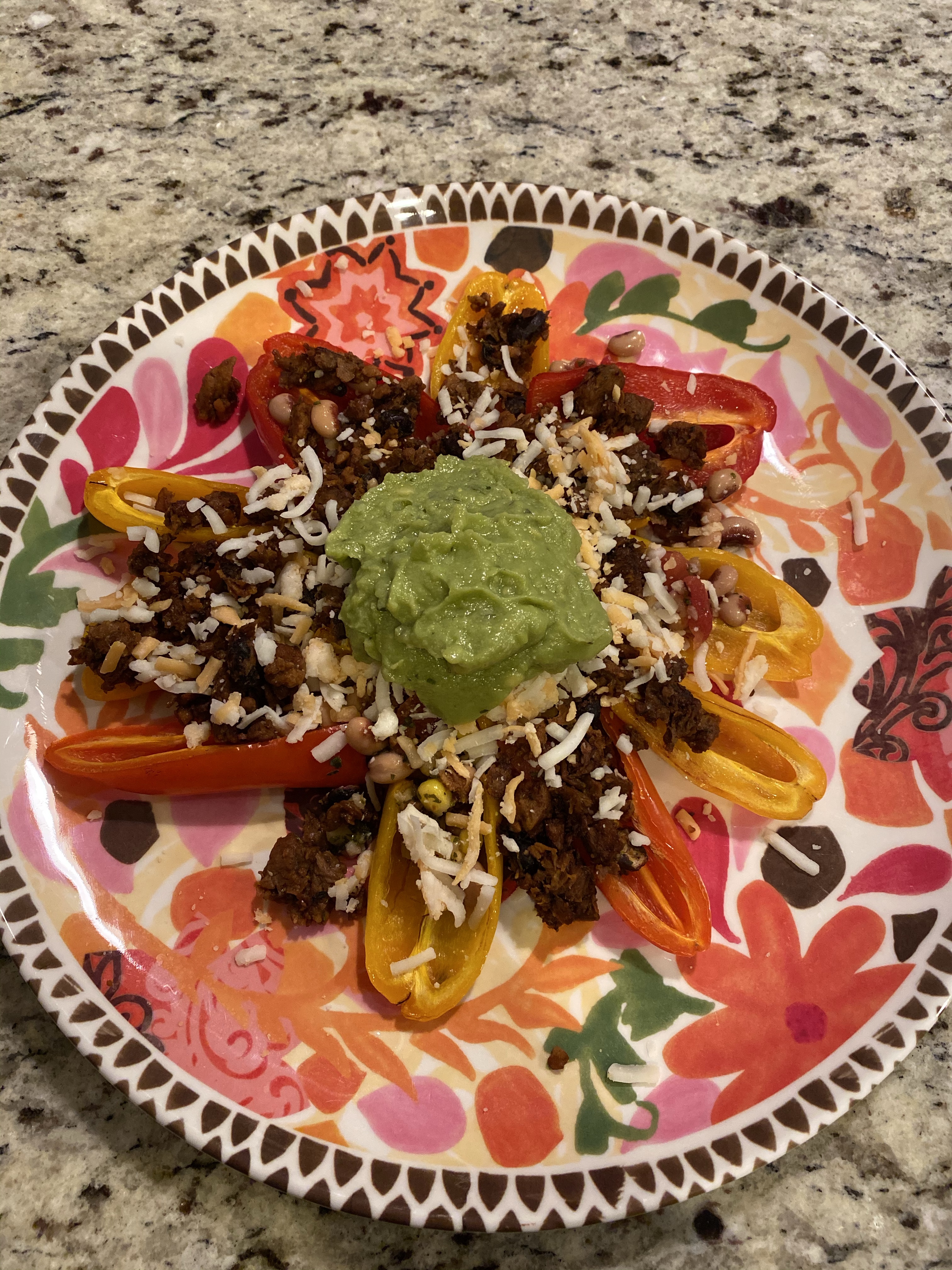 One of my favorite nacho toppings is guacamole. I love guac and will find any excuse to eat it—extra or not. One day, I was dipping some mini bell peppers into guacamole, and it hit me—Bell Pepper Nachos. Tons of flavor and extra veggies—Win, Win!