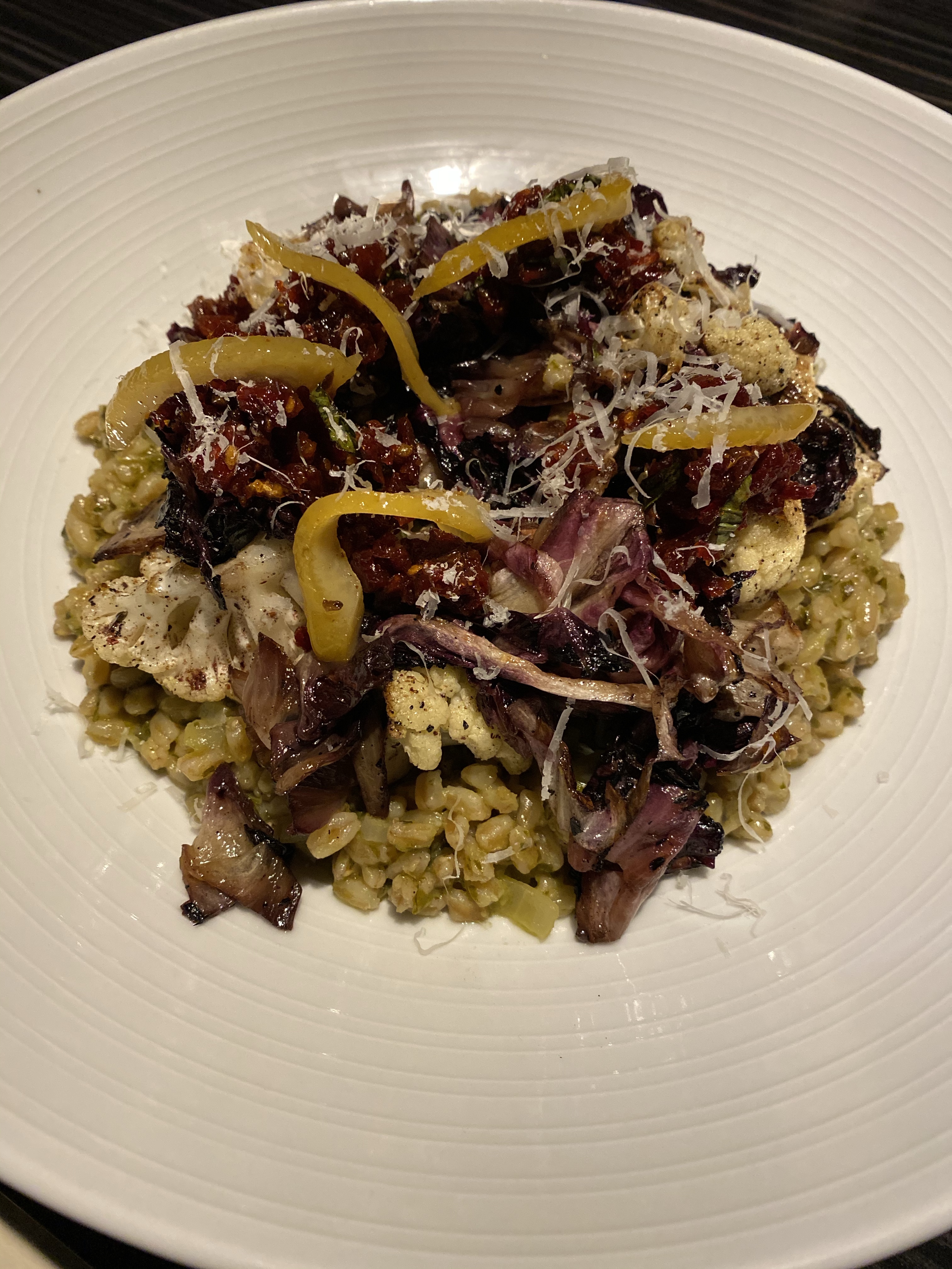 First up was a girls night at Plate in Brookside.  We met at 5:30 on a snowy Saturday night, and everything was perfect from the second we walked in the door to the careful walk to our cars on the frozen sidewalks.  Plate was also offering their happy hour during this time, so we took advantage of their wine specials.  All of us decided to order from the Restaurant Week menu (of course), and we each ordered different items.  For my first course, I ordered the Italian salad.  My second course, the main entrée was a faro dish.  The menu had four main courses listed, all of which contained meat.  I asked for one to be modified, and they came back with the offer to create a vegetarian dish, which was such a generous and lasting experience.  I’m so glad I took them up on the offer, because it was exceptional!  And finally, my dessert was the Trio, which was an incredible chocolate and caramel concoction that tasted like a creamy chocolate crusted Werther’s.  Incredible.