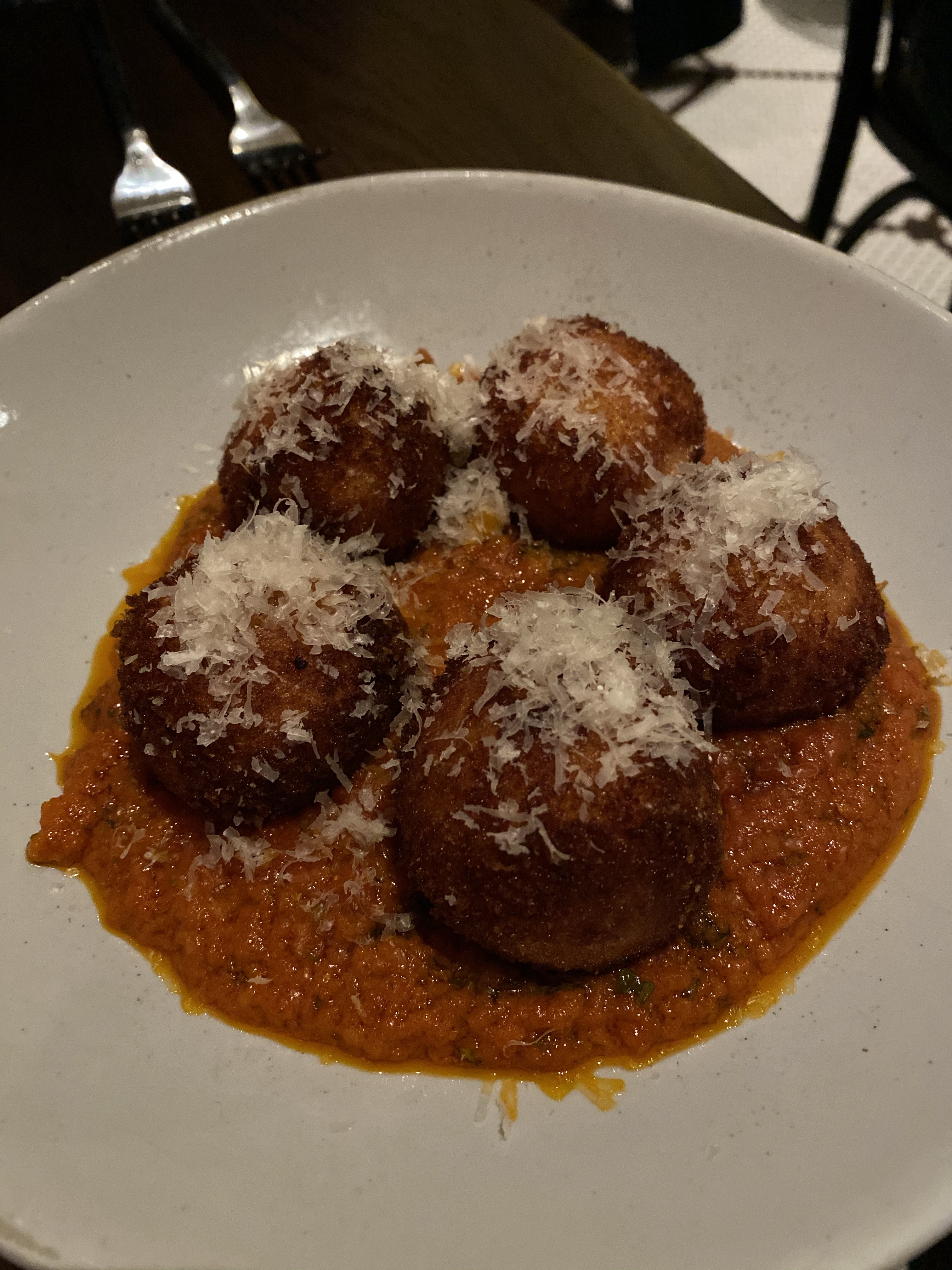 My third and final visit was a date night at Lazia at the Crossroads Hotel. The Crossroads Hotel is certainly a hot spot in our city. With its swanky, yet historic setting, it’s the place to be on any night of the week. We were seated at a table right by one of the two vaults in the building that belonged to Tom Pendergast, and this bank nerd was thrilled. We started with cocktails–a glass of Malbec for me and a Dual Intersect for Chad, which is the Crossroads collaboration beer with Double Shift Brewing. Although we were in for a filling meal, we took our server’s suggestion to start with an order of their arancini, and we were so glad we did. Between that and the complementary house-made focaccia, we were worried we might be too full to continue. But we didn’t worry for too long, because it was time to get started on our courses. For our first course, we ordered a Caesar Salad and House Salad and shared both. We had our respective favorite but agreed that both were fantastic. The second course was the entree, and we ordered the Artic Char and the Pomodoro and shared. Both were so flavorful, and we ate every single bite! And the final course–dessert, my favorite. We ordered both the Buttermilk Panna Cotta and the Tiramisu. And yes, we shared, but Chad always lets me have significantly more. These were so fabulous, but the tiramisu definitely stole the show for me. They make it in house, and it’s the best I’ve ever tasted. We finished our visit with craft cocktails at the XR Bar in the lobby. Everything from start to finish was exceptional!